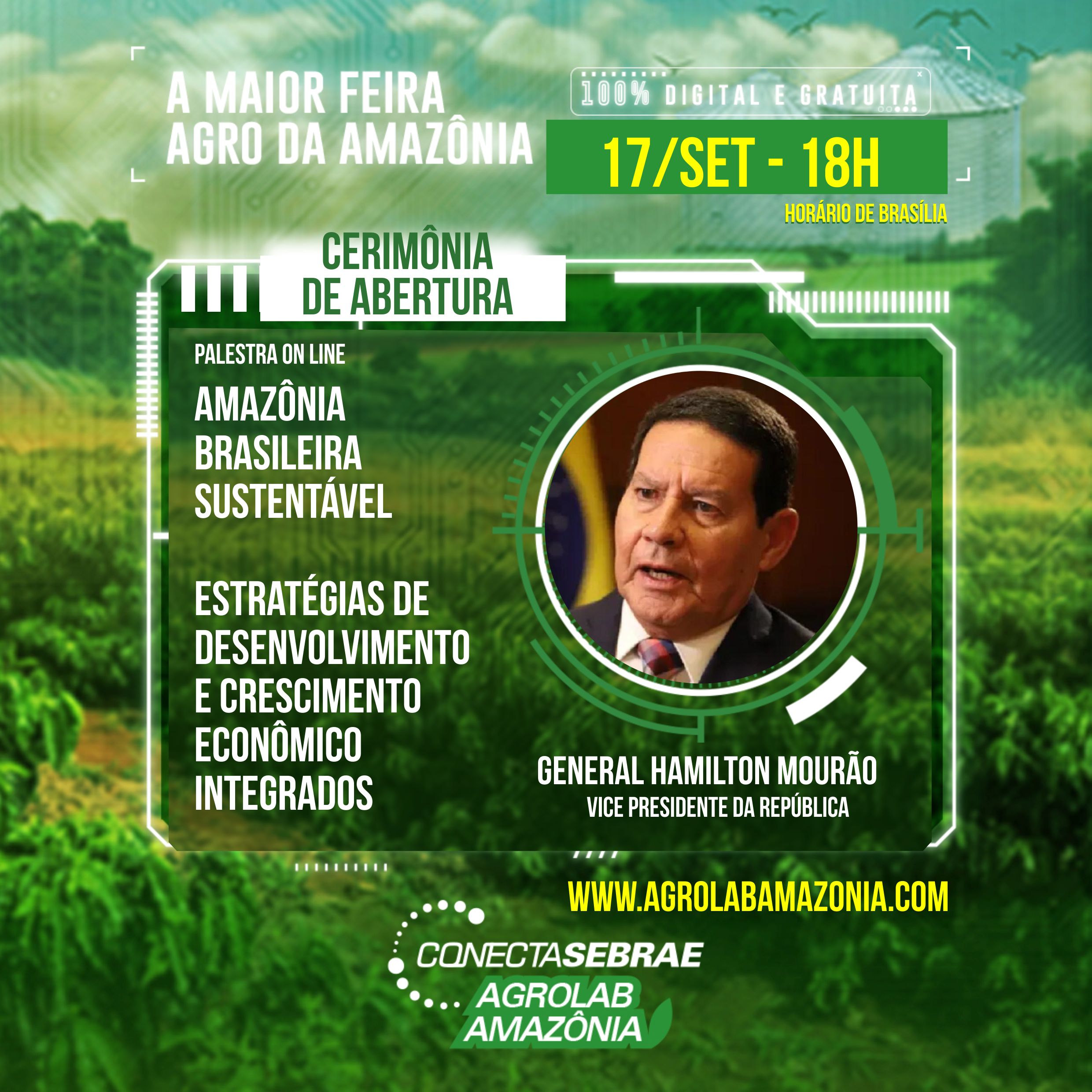 Um dos pontos altos do momento será o discurso de abertura proferido pelo Vice-Presidente da República, General Hamilton Mourão fará durante o evento. Com o tema “Amazônia Brasileira Sustentável – Estratégias de Desenvolvimento e Crescimento Econômico Integrados”, Mourão estará à vontade pois são tema que lhe são muito afetos: estratégia e Amazônia: além e sua carreira militar inquestionável, já comandou Organizações Militares na região amazônica.