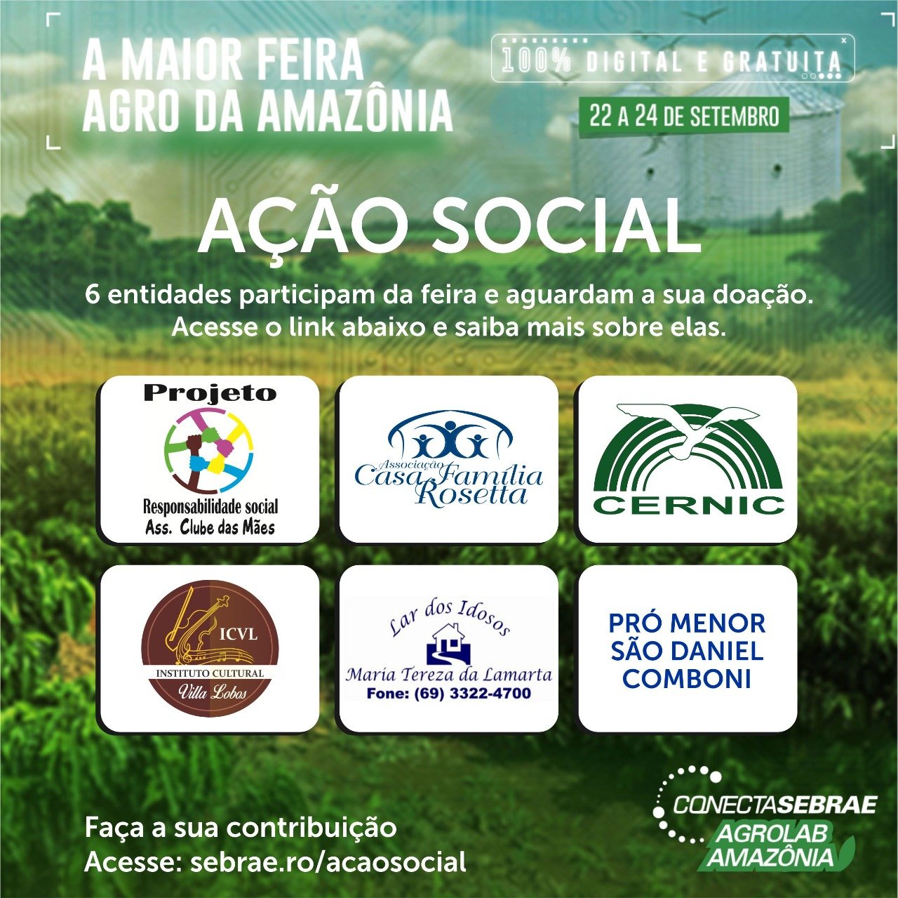 “Avaliamos que sempre podemos contribuir para que entidades sérias como as que estão relacionadas possam receber apoio financeiro pois atendem muitos indivíduos em vulnerabilidade. Procuramos contemplar praticamente todas as regiões do estado. Toda ajuda é bem-vinda, especialmente neste momento de pandemia”, disse Daniel Pereira, diretor superintendente do Sebrae em Rondônia, que idealizou o evento Agrolab Amazônia.