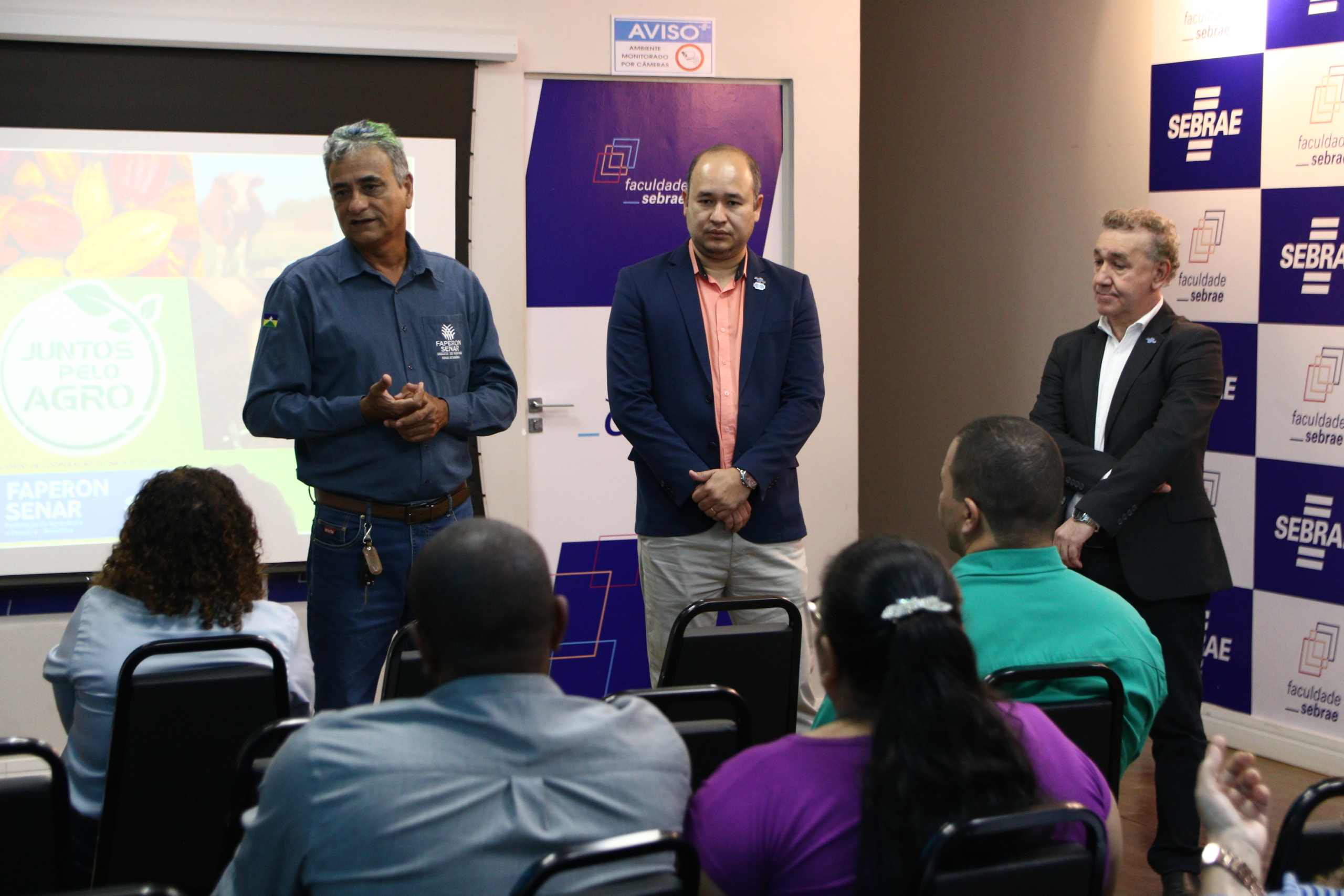 Presidente da FAPERON-SENAR Hélio Dias, diretor técnico do Sebrae em Rondônia Carlos Eduardo Sakagami e o diretor financeiro Edson da Silva Lemos